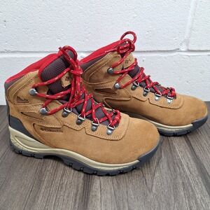 Columbia Newton Ridge Plus Waterproof Hiking Boots Tan Red Womens 7.5 BL1552-286
