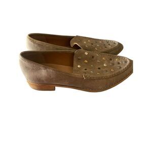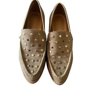 Mi.im Women’s Taupe Leather Almond Toe Studded Detail Slip-On Loafers Size 8