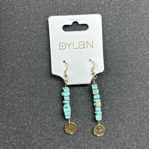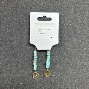 Dylan Jewelry Daphne Earring Turquoise Dangle Tarnished Gold Coin Charm NWT