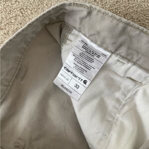 Classic flat-front shorts with durable Carhartt construction. Deep front pockets and belt loops for practical wear. Neutral tan pairs well with casual tops. Built for everyday comfort and utility.