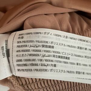 Stunning Abercrombie & Fitch cropped blouse in a warm brown/tan color. This gorgeous top features a flattering V-neckline, long blouson sleeves with elasticized cuffs, and a smocked waistband for a comfortable, fitted finish. The silky fabric drapes beautifully and has a subtle sheen.