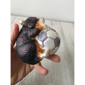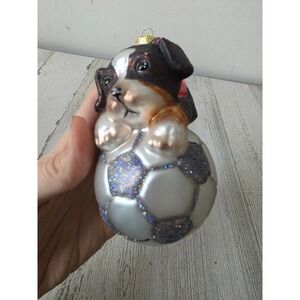 GLASS BLOWN ORNAMENT CHRISTMAS BERNEDOODLE PUPPY DOG SPORTS SOCCER BALL ORNAMENT