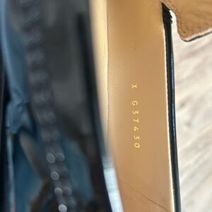 Color: Black patent leather with gold-tone hardware