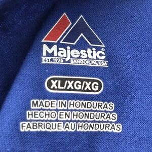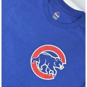 The product is a Chicago Cubs Kris Bryant #17 Blue Jersey T-Shirt in Men's XL size, officially licensed by the Major League Baseball. Made by Majestic, the shirt is perfect for any fan of the Chicago Cubs and baseball in general. The shirt is of high quality, made in Honduras, and features the player's name and number on the back. Show your support for Kris Bryant and the Chicago Cubs with this stylish and authentic fan apparel.
