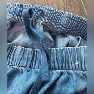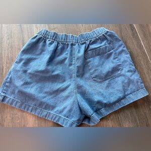 Lightweight denim shorts with an elastic waist. Relaxed fit and easy movement. Classic blue hue for casual looks.