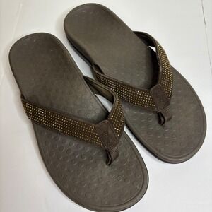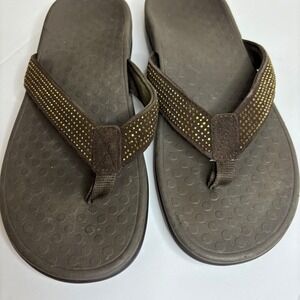 Vionic Women Brown Embellished Flip Flop Sandals Thong Beach Pool Size 8