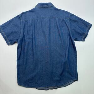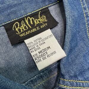 Bob Mackie Wearable Art Floral Embroidered Denim Shirt. Short sleeves. Button front. Brass buttons. 100% cotton. Womens size Medium. Good used condition.