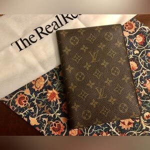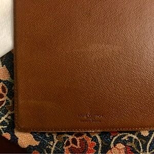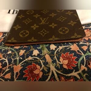 Louis Vuitton Desk Agenda Cover. In good/fair vintage condition. Used as a Wallet. Monogram canvas in good condition. Inside leather has faded spots in different areas. Pockets are not sticky, but there is minimal scuffing. Little vintage odor. Nothing offensive. Smoke free home. Bought from The RealReal. Date Code: 871 A2