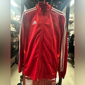 For sale is a ladies Adidas running suit. Both the jacket and the pants are a size small. The jacket has a bit of piling and there’s a tiny rip.