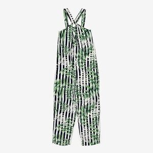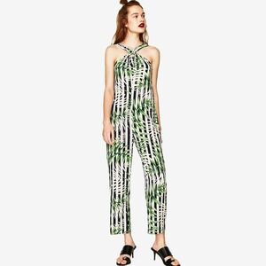 Zara Trafaluc Striped Leaf Print Jumpsuit Size S Tropical Resort Vacation Summer