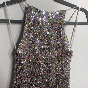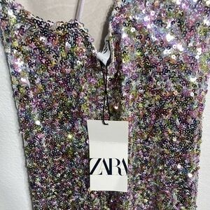 Zara Viral colorful SEQUIN KNIT HALTER DRESS NWT