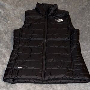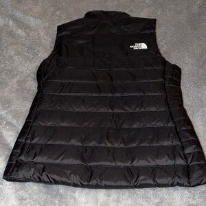 Lightweight insulated vest for layering. Quilted design with full zip front. High collar helps retain warmth. Logo on chest for brand detail. Sleek black finish for versatile wear.