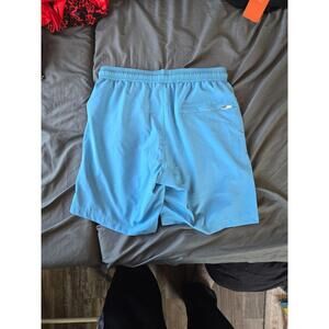 These Maamgic men's swim trunks are a versatile addition to any summer wardrobe. Featuring a vibrant light blue hue, they are crafted from a quick-dry polyester blend that ensures comfort both in and out of the water. The design includes an elasticized waistband with an adjustable white drawstring for a personalized fit, two side pockets, and a secure zippered back pocket for essentials. The lightweight fabric and mesh lining provide breathability and support. Perfect for the beach, pool, or casual summer outings, these shorts combine functional athletic wear with a clean, contemporary aesthetic. The brand is known for offering reliable quality at an accessible price point, making these a solid choice for resale during the warmer months.