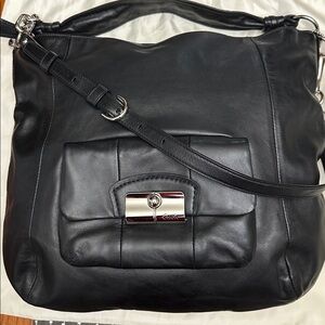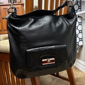 ⭐️#14769 Coach Kristin Black Leather Hobo Bag Silver Hardware Blue Interior