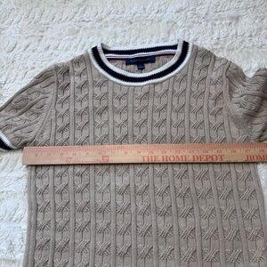 Tommy Hilfiger Khaki Cable Knit Short Sleeve Sweater Preppy Classic Size M