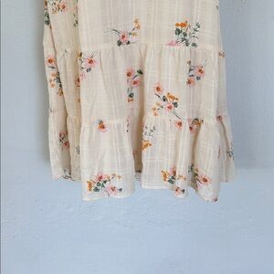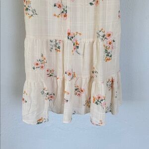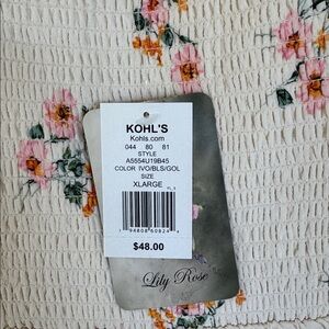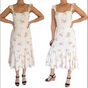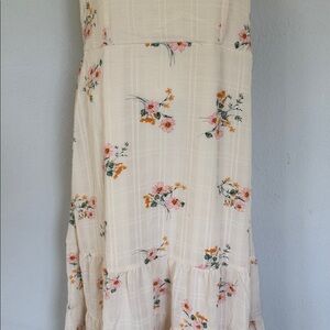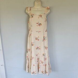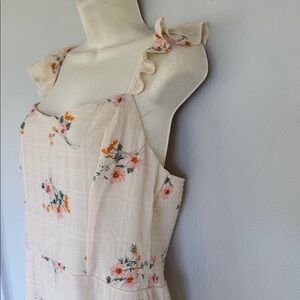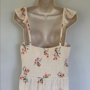 Lily Rose ivory and pink floral print ruffle cap spaghetti strap sweetheart neckline smocked elastic midi length dress size XL. Brand new never worn!