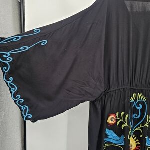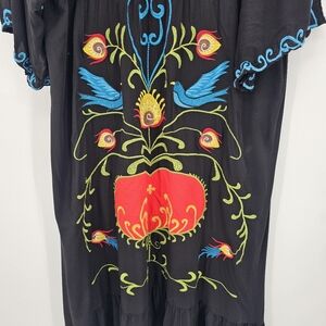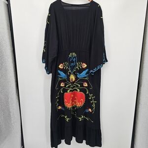 Embroidered Boho Heart & Birds Butron Down Maxi Dress Womens Size Xl