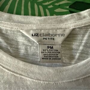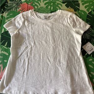 New Liz Claiborne White Short Sleeves Lace Top PM Petite M NWT