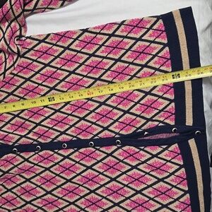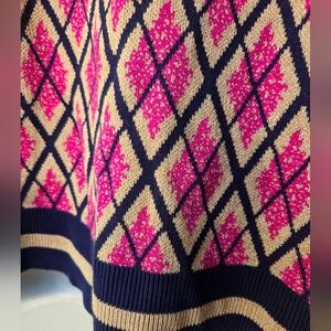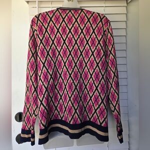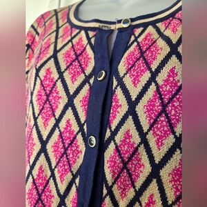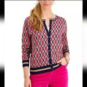 🟣 Charter Club Pink and Navy Argyle Crewneck Cardigan