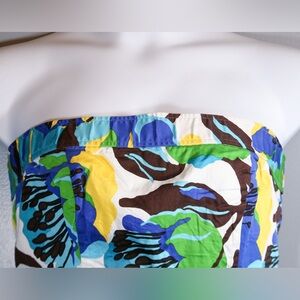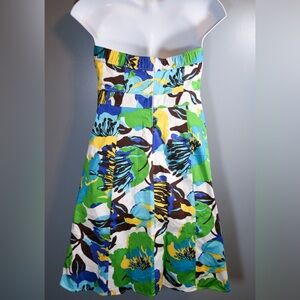 a.n.a Strapless Floral Cotton Sundress Size 16 Blue Green Yellow Fit & Flare