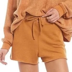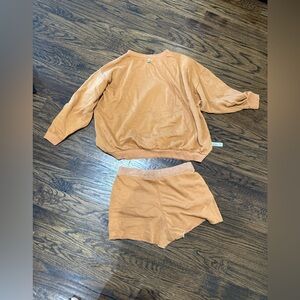 Free People Kelly Lounge Sweatshirt Short Set Cognac Size Medium NWOT