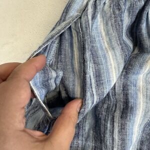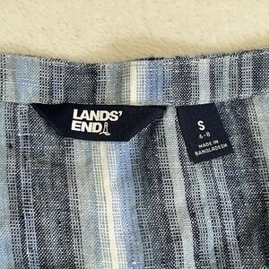 Lands End Blue Striped 100% Linen Scoop Neck Maxi Dress Size Small (6-8)