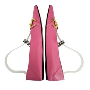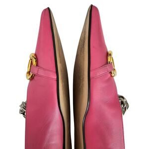 Gucci Horsebit Chain Pointed Toe Ballet Flat Size 38.5 US 8.5 Pink Gold Silver