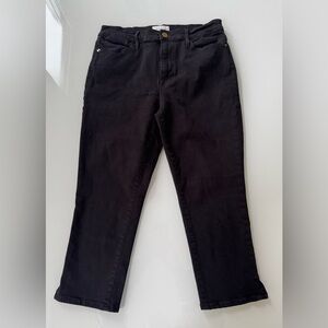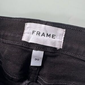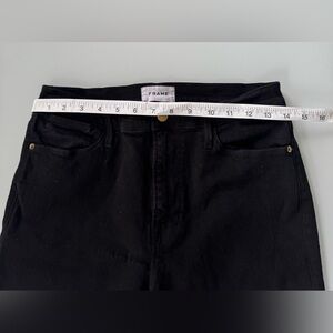 Classic FRAME black denim jeans featuring a clean, minimalist design and flattering straight-leg silhouette. These versatile jeans are crafted from premium denim and offer a polished look that works for both casual and elevated outfits.