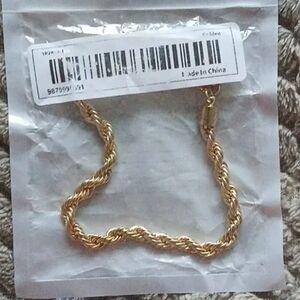 Elegant gold-tone rope chain bracelet for everyday wear. Shiny gold finish adds a polished touch to any outfit. Lightweight and comfortable with secure lobster clasp closure. Versatile piece that layers well with other bracelets.
