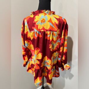 Umgee Multicolor Ruffled Blouse Small 70s inspired| festival wear| retro floral