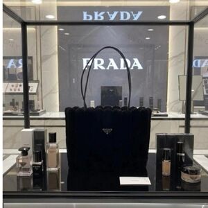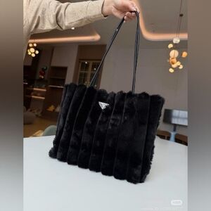 PRADA Black Faux Fur Tote Bag & Insert