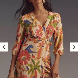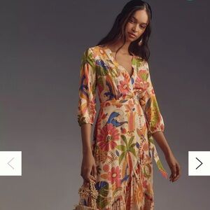 FARM Rio Long-Sleeve V-Neck Wrap Midi Dress