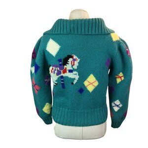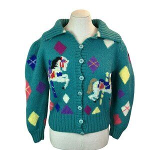 Vintage Berek Hand-Knit 100% Wool Cardigan Sweater Carousel Horse Pattern Button-Up Womens