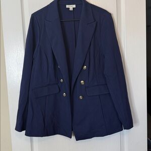 On 34th Faux Double Breasted Ponte Knit Blazer Navy Blue 1X