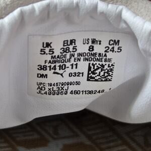 The Puma Suede Classic 21 Shoes in women's size 8 are stylish pink and white lace-up sneakers perfect for casual occasions. Featuring a low-top design, solid pattern, and logo accents, these sneakers have a suede lining for comfort. With a rubber outsole for durability, these Puma Suede Classics are great for skater-inspired streetwear looks, mixing classic and retro themes with athleisure style. Made with foam insoles in Indonesia, these sneakers are a fashionable choice for summer, fall, and spring seasons.
