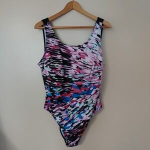 NWOT Women's 3XL Bathing Suit Swim One Piece Swimsuit Black Multi Pink
