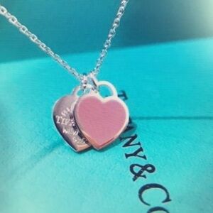 Elegant Tiffany & Co necklace featuring a pink and silver heart pendant. Perfect for adding a touch of sophistication to any outfit.