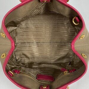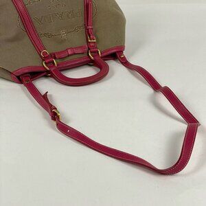 Prada Logo Jacquard Handbag 2-Way Shoulder Bag Ribbon Handbag Canvas Brown