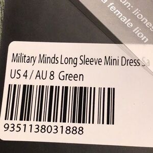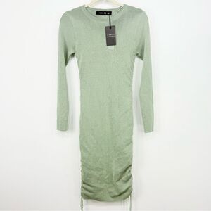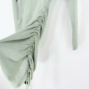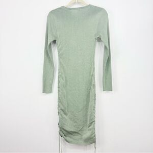 Lioness Military Minds Light Green Ruched Tie Side Ling Sleeve Stretch Dress NEW