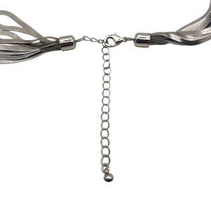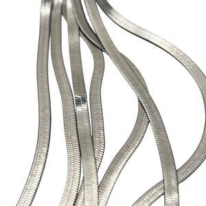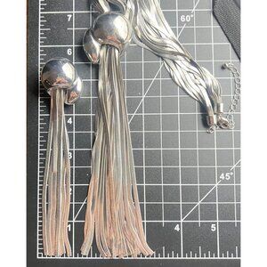 Silver Tone Necklace Earrings Set Multi Strand Snake Chain Long Tassel Runway