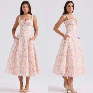 House of CB Rosalee Pink meadow Floral Stretch Cotton Petticoat Dress NWOT sz XS