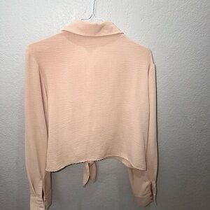 Discover elegance with this beige button-down shirt, featuring a chic tie front. Perfect for both casual and formal settings.