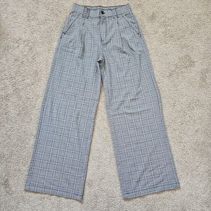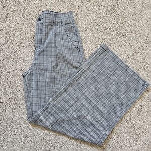 High-rise wide-leg pants with a subtle plaid. Clean pleats and belt loops. Lightweight, drapey fabric for easy wear. Like new condition!