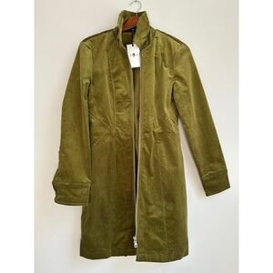 7 For All Mankind Olive Green Corduroy Zip Front Long Sleeve Coat Size 6