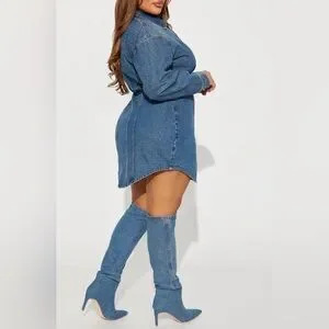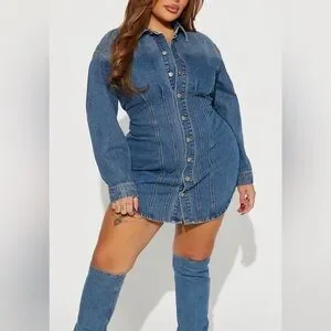Fashion Nova blue denim mini dress with button up front size 3X #denim #minidress