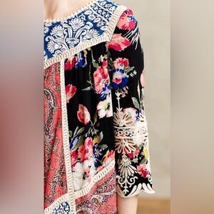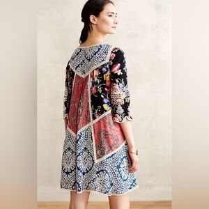 Beautiful and rare Vanessa Virginia for Anthropologie Inez Swing Dress featuring a stunning patchwork mix of floral and paisley prints.
