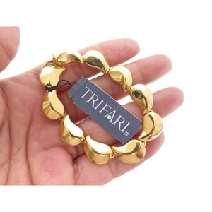TRIFARI DESIGNER SIGNED GOLD PLATED PAISLEY LEAF WIDE LINKED BRACELET NEW W TAGS
