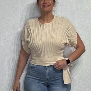 Club Monaco Cream Dolman Short Sleeve Side Tie Sweater Sz S