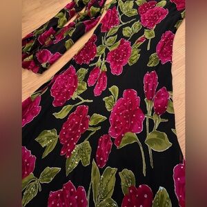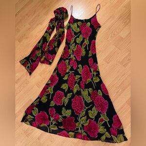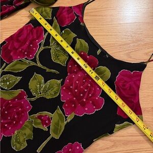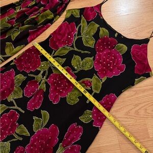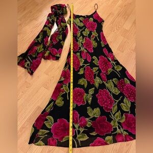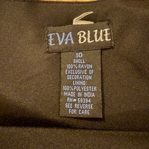The VTG Y2K Eva Blue Beaded Dress with Scarf in size 10 is a formal and fairy-like outfit perfect for parties or cocktail events. This midi-length dress features a sleeveless design with intricate beadwork accents, giving it a unique and vintage appeal. Made from a combination of polyester and rayon, this black dress is ideal for the summer and spring seasons. The flowy and spaghetti strap style adds a touch of elegance to this whimsical and charming dress by Eva Blue.