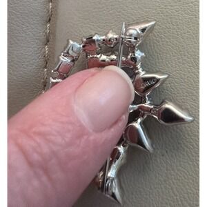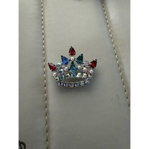 The Vintage B. David Mother's Crown Multicolored Rhinestone Gold Tone Brooch Pin is a stunning piece of fashion jewelry from the 1950s. This brooch features a unique crown shape with multicolor rhinestone crystals and imitation pearls, set in yellow gold. Signed by the renowned brand B. David, this handmade piece exudes elegance and charm, making it a perfect accessory for women who appreciate vintage style. The intricate detailing and original design of this brooch make it a standout piece in any jewelry collection.